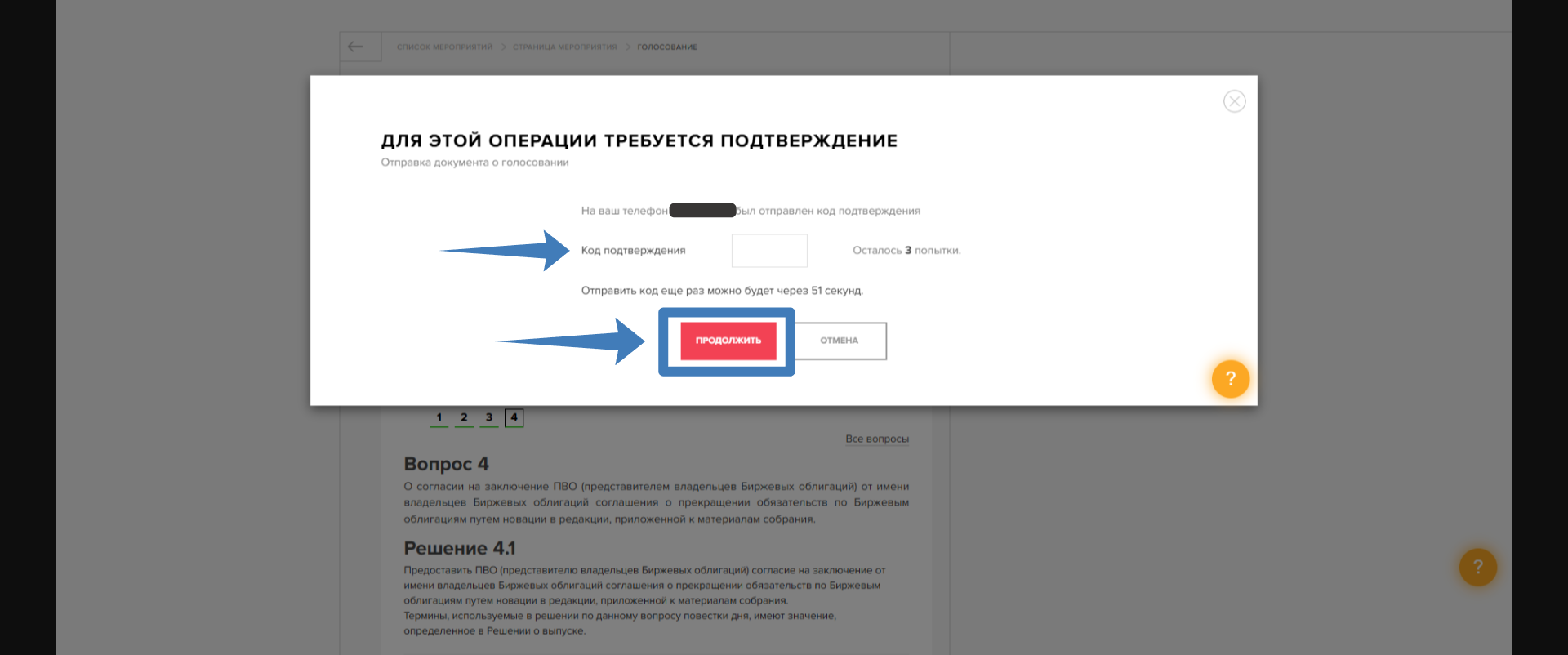 15. На ваш телефон будет направлен СМС-код для подтверждения. Потребуется ввести его в соответствующее поле и нажать кнопку «Продолжить».