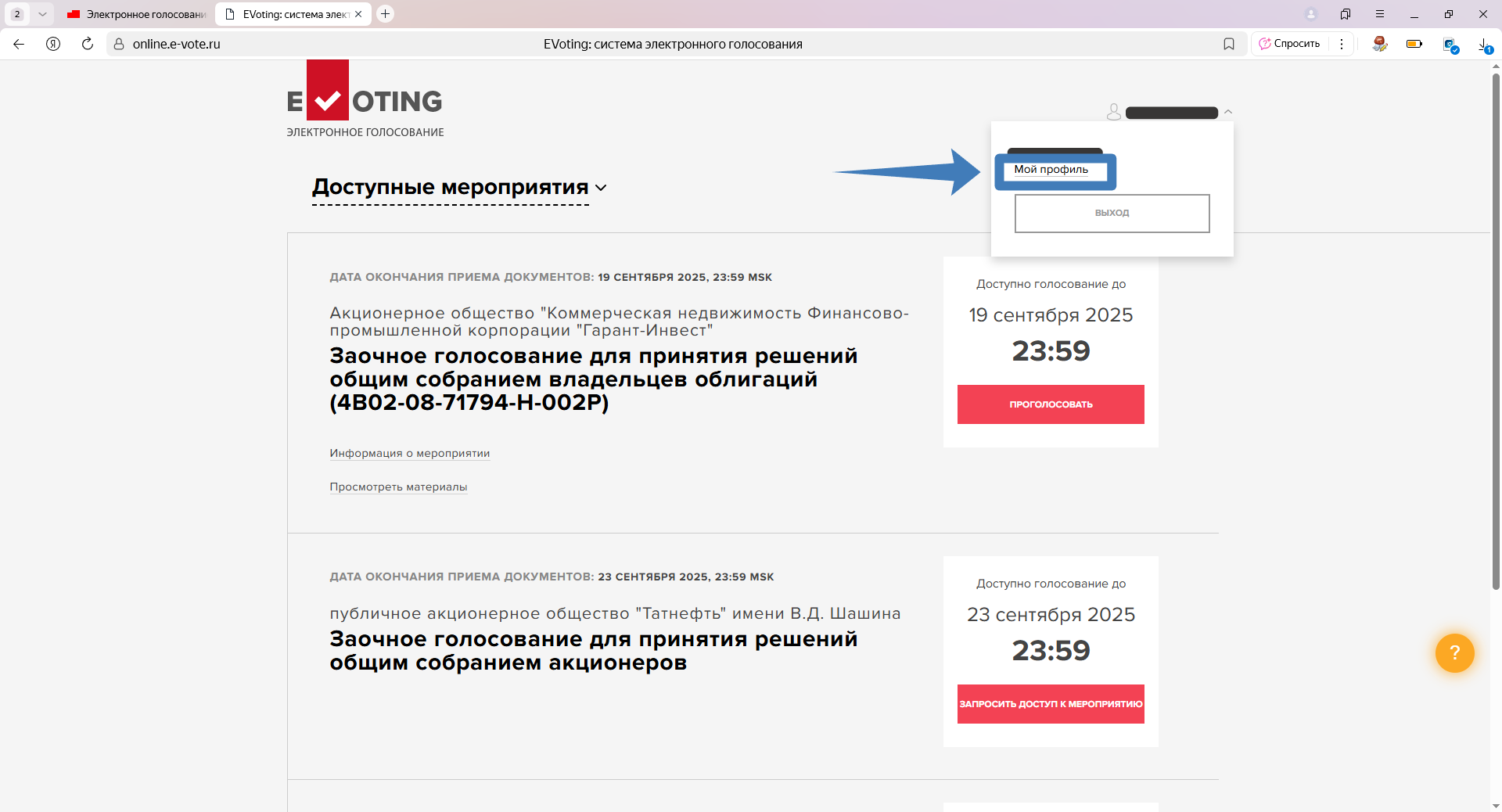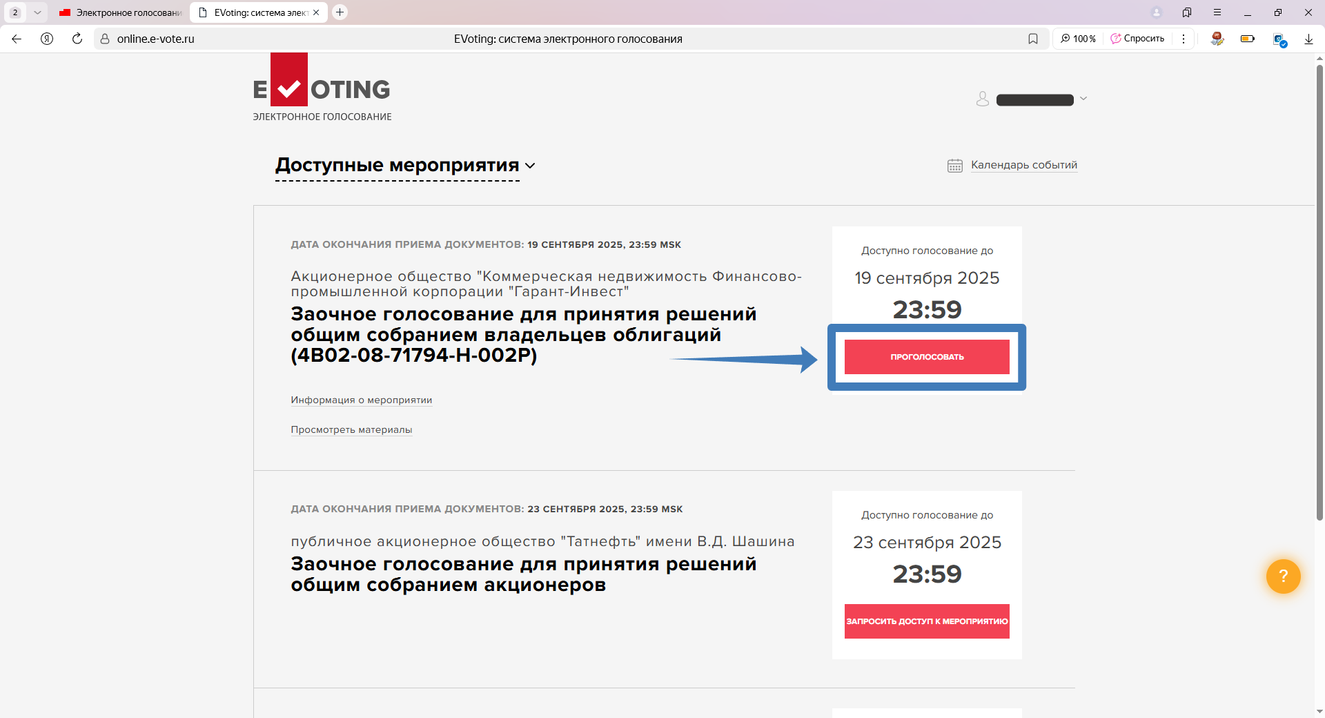 Если в списке доступных вам голосований нет нужного, то, возможно, потребуется немного подождать, чтобы ваш брокер/депозитарий направил в НРД информацию, необходимую для составления списка лиц, имеющих право на участие в общем собрании владельцев облигаций. Указанная информация может быть направлена в НРД только после окончания операционного дня, на который приходится дата фиксации списка.